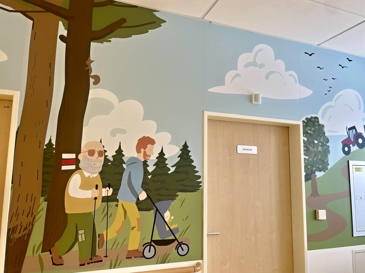 Nové Město na Moravě / Regionální výjevy na tapetách pokrývajících stěny pavilonu dětského oddělení novoměstské nemocnice představují krajinu Novoměstska - Harusův kopec, tradiční roubenky, Tři kříže, skálu Čtyři palice, lesy, zvířátka, sportovce či třeba turisty ve čtyřech ročních obdobích. „Za výtvarným zpracováním stojí brněnský výtvarník, grafik a ilustrátor Vojtěch Čižmář,“ uvedla vrchní sestra dětského oddělení novoměstské nemocnice Romana Chalupská. Speciální tapety byly uhrazeny z výtěžku charitativní cyklojízdy Na kole dětem Žďárskými vrchy, kterou už od roku 2015 organizuje žďárský handicapovaný cyklista Aleš Wasserbauer. „Věříme, že našim malým pacientům zpříjemní chvíle, které u nás musí strávit. Každý úsměv navíc je pro nás obrovskou odměnou. Děkujeme všem, kteří se zapojili, přispěli, šlapali do pedálů a pomohli dobré věci,“ dodala vrchní sestra. „Nejenom léky a medicínské postupy hojí rány. Neméně důležitá je i pohoda a příjemné prostředí, ve kterém se hospitalizované dítě ocitne. A nová výzdoba je dalším prvkem, který může pozitivně zapůsobit hned při vstupu na oddělení. Výjevy z naší krásné Vysočiny pak třeba i vybízejí k tomu, aby se každý malý i větší pacient rychle uzdravil a po nezbytné rekonvalescenci se vydal tato místa objevovat nejen na obrázcích,“ konstatoval primář dětského oddělení Matouš Záleský.