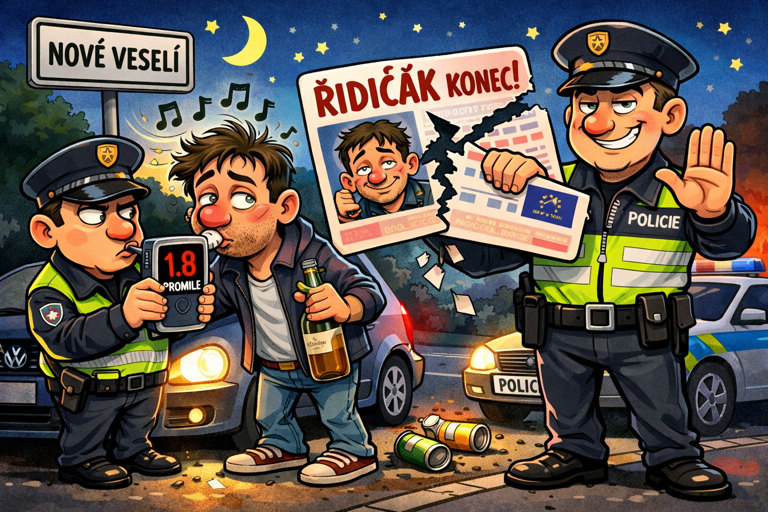 „Jednatřicetiletý řidič s vozidlem Volkswagen Golf projížděl po ulici Žďárská a Na Městečku a v prostoru zastávky ho zastavili policisté. Po kontrole dokladů ho vyzvali, aby se podrobil dechové zkoušce, jejíž výsledek byl pozitivní s naměřenou hodnotou 1,81 promile alkoholu. Pozitivní výsledek měla i druhá dechová zkouška s naměřenou hodnotou 1,68 promile alkoholu v dechu. Řidič s naměřenými hodnotami na místě souhlasil, požití alkoholu před jízdou na místě doznal a lékařské vyšetření spojené s odběrem biologického materiálu nepožadoval,“ informovala policejní mluvčí Dana Čírtková.